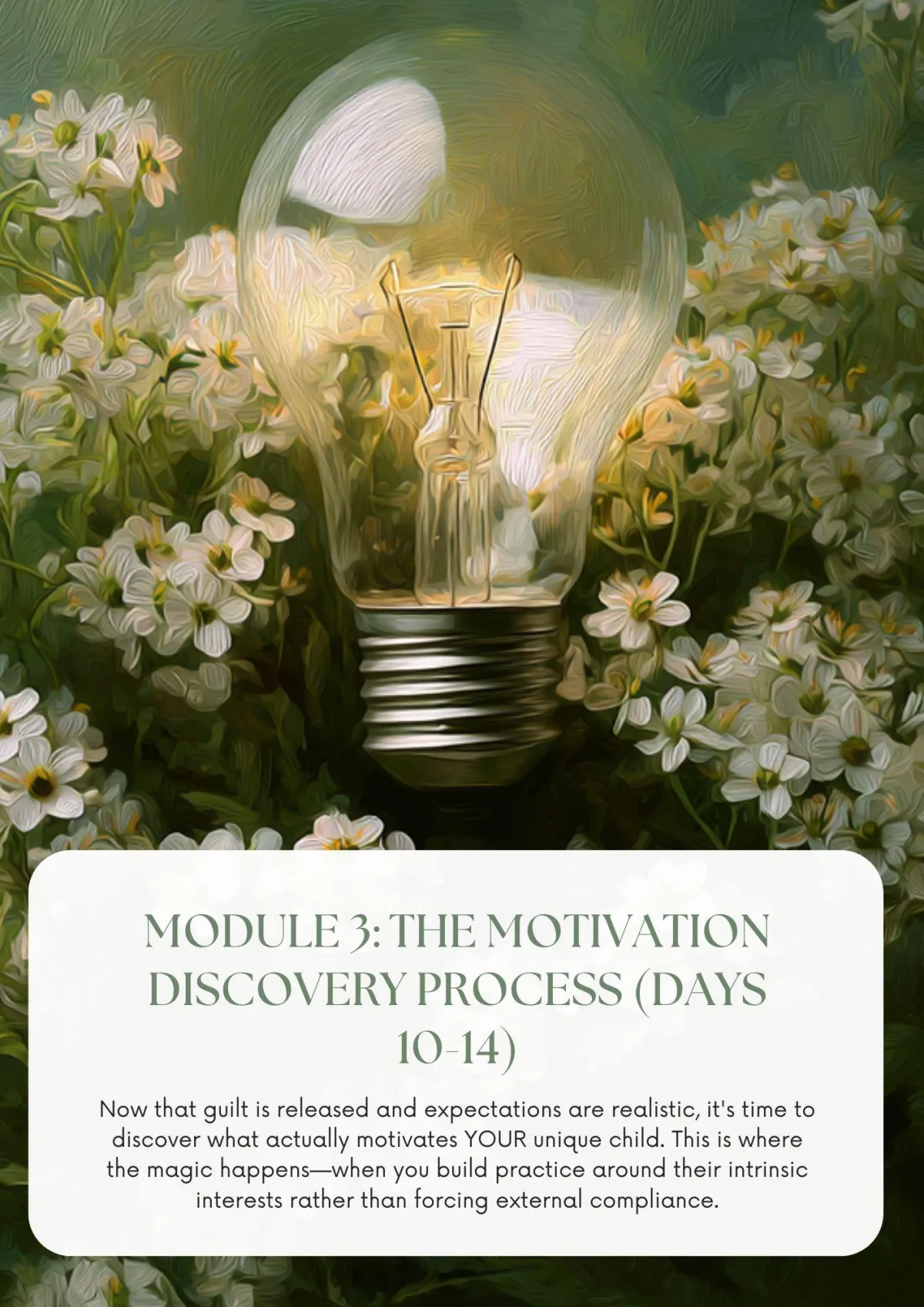 By removing the shame, adjusting expectations, and rebuilding practice around your child's natural motivations, I was able to: